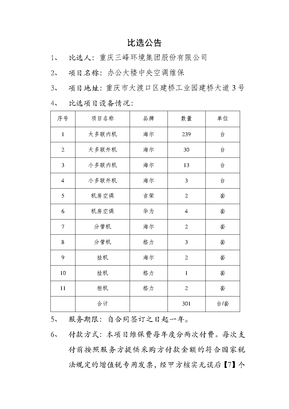 附件一《重慶三峰環(huán)境集團(tuán)股份有限公司辦公大樓中央空調(diào)維?!?doc